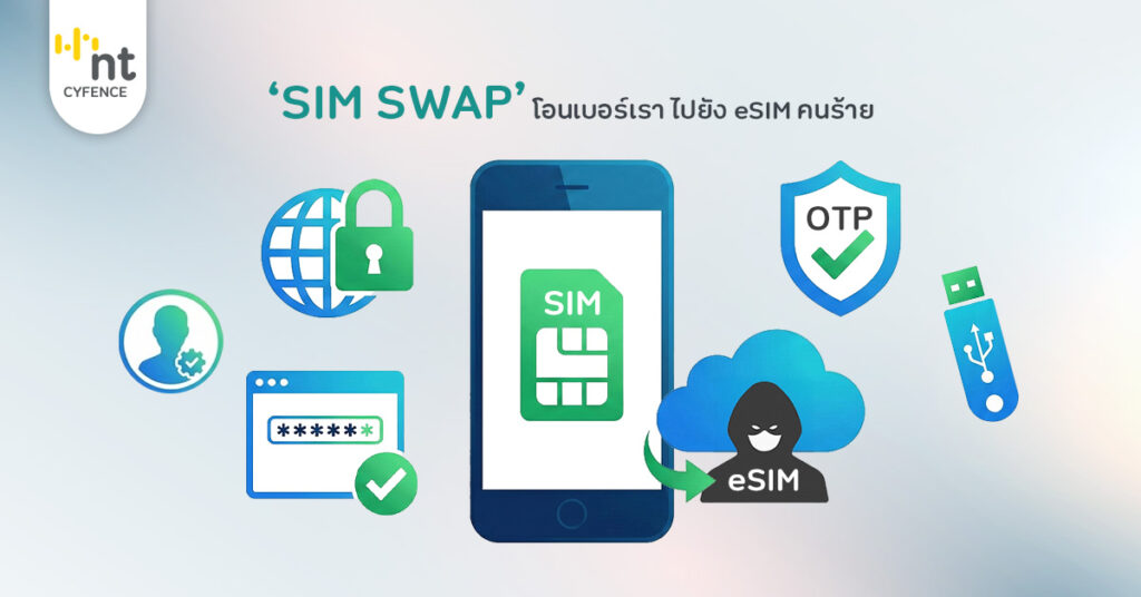 - เมื่อต้อง ยืนยันตัวตน หรือ เปิดแอปธนาคาร มีความเสี่ยงกับ SIM Swap / eSIM Port‑Out หรือ Credential Stuffing เพราะรหัสซ้ำ หรือเบอร์โทรศัพท์ถูกโอนย้ายไปยังผู้ไม่หวังดี