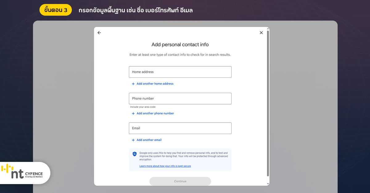 - Awareness Training: ให้ความรู้กับพนักงานเกี่ยวกับการลบหรือจำกัดข้อมูลที่ไม่จำเป็นบน Search Engine