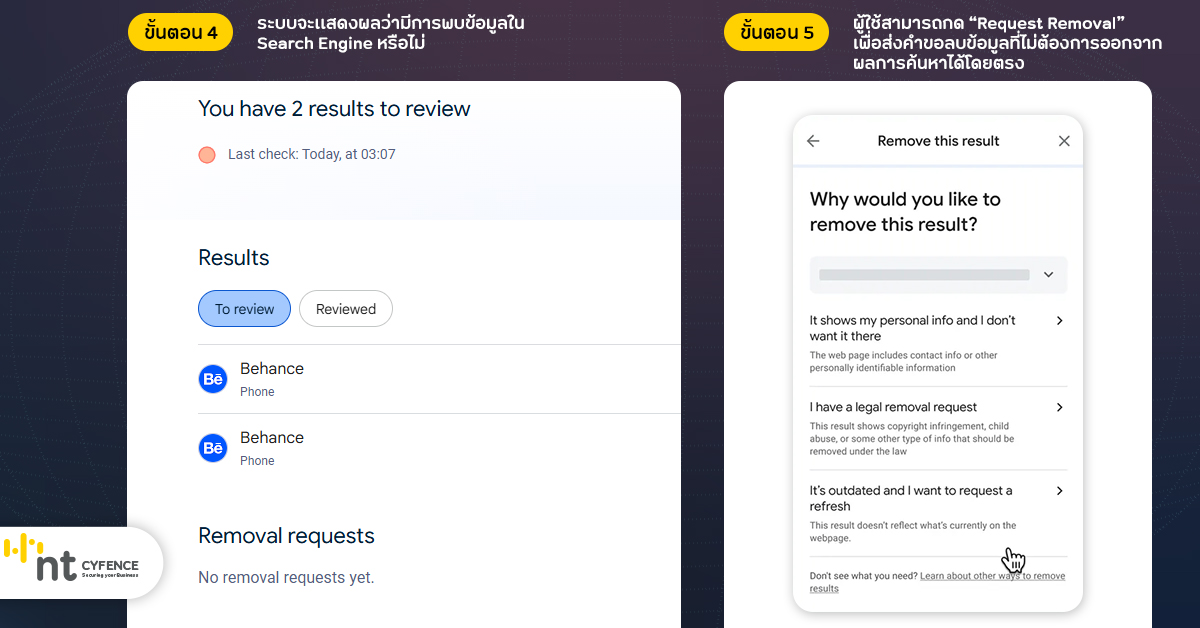 5. ผู้ใช้สามารถกด “Request Removal” เพื่อส่งคำขอลบข้อมูลที่ไม่ต้องการออกจากผลการค้นหาได้โดยตรง