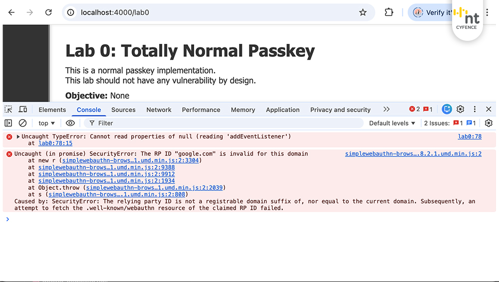 สำหรับใครที่สนใจในส่วนนี้ ใน DVP นอกเหนือจาก Lab 0 ซึ่งเป็นตัวอย่างการ Implement ที่ปลอดภัยแล้ว ยังมีเว็บแอปพลิเคชันที่ “จงใจ” Implement Passkey แบบมีช่องโหว่อีกด้วยครับ (คล้าย ๆ DVWA) ซึ่งผมก็ ขอแนะนำว่าให้ลองเข้าไปเล่นดู ถ้าอยากทดสอบความรู้ตัวเองหรือศึกษา Passkey อย่างลึกซึ้ง