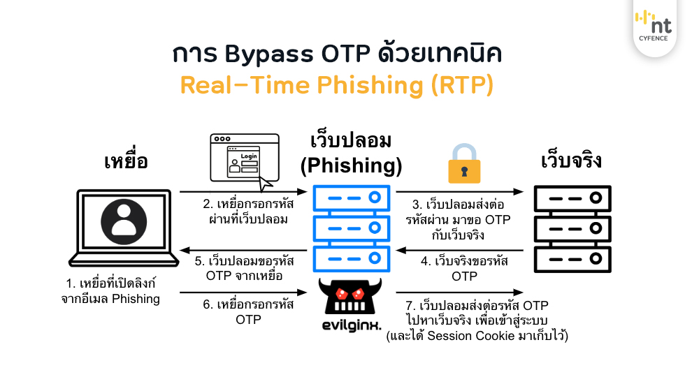 แม้เราจะมี MFA (Multi-Factor Authentication) อย่าง TOTP (ด้วยแอปพลิเคชัน Google Authenticator) หรือ SMS OTP มาช่วยลดความเสี่ยง แต่ก็ไม่ได้ไร้เทียมทาน อย่างเช่นการโจมตีแบบ Adversary-in-the-Middle (AiTM) ที่ใช้เครื่องมืออย่าง evilginx2 เพื่อดักจับทั้ง Username, Password และ OTP ที่ผู้ใช้งานตัวจริงเป็นคนกรอกให้เอง และดักจับ Session Token ที่เซิร์ฟเวอร์ส่งกลับมาไปใช้งานต่อ