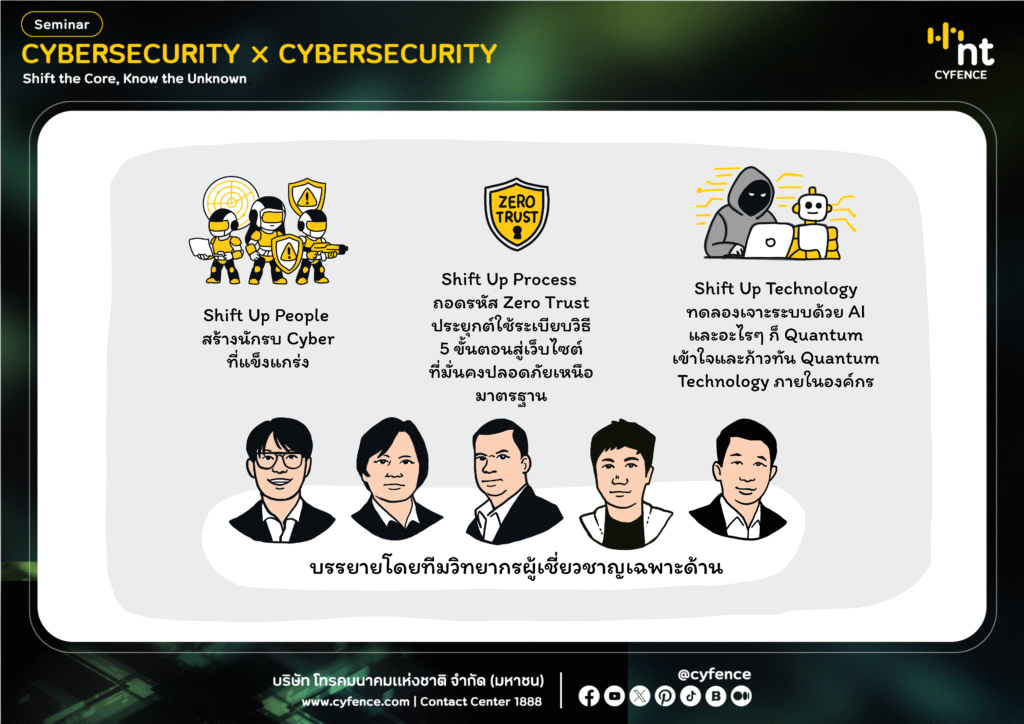 NT cyfence จัดงานสัมมนาด้าน Cybersecurity เมื่อวันที่ 16 ตุลาคม 2568 ที่ผ่านมา ณ โรงแรมแกรนด์ เซนเตอร์ พอยต์ ลุมพินี มีเป้าหมายเพื่อยกระดับความตระหนักรู้และสร้างภูมิคุ้มกันทางไซเบอร์ให้แก่หน่วยงานและองค์กรในยุคดิจิทัล