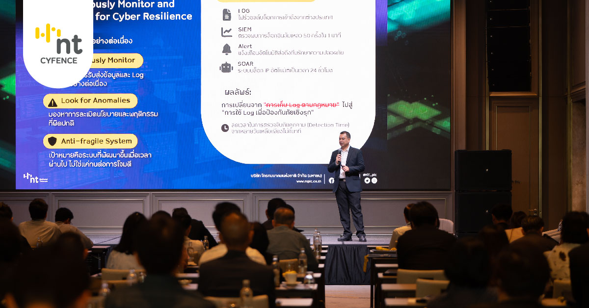 งานสัมมนาครั้งนี้มีผู้ให้ความสนใจเข้าร่วมเป็นจำนวนมาก โดยผู้เข้าร่วมต่างได้รับความรู้เชิงลึกทั้งด้านบุคลากร กระบวนการ และเทคโนโลยี ที่สามารถนำไปต่อยอดพัฒนาให้กับองค์กรและป้องกันภัยไซเบอร์ได้อย่างแข็งแกร่ง ซึ่ง NT cyfence ยังคงมุ่งมั่นเป็นผู้นำในการให้บริการและส่งเสริมองค์ความรู้ด้าน Cybersecurity ของประเทศไทย เพื่อขับเคลื่อนการเปลี่ยนผ่านสู่โลกดิจิทัลอย่างมั่นคงและปลอดภัยในทุกมิติ