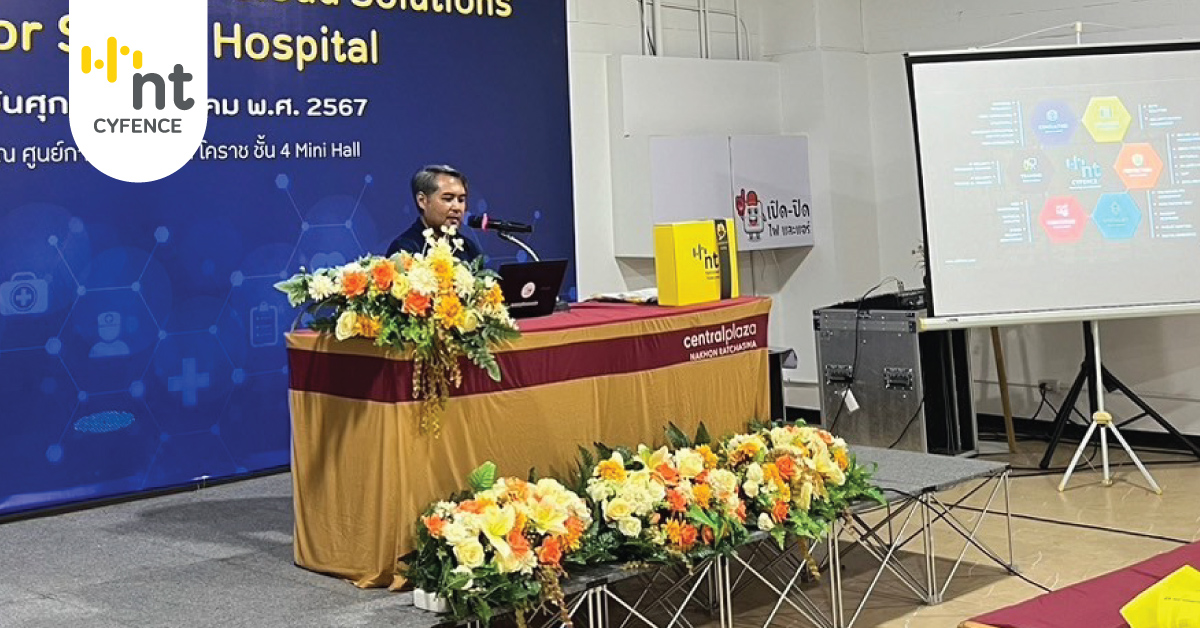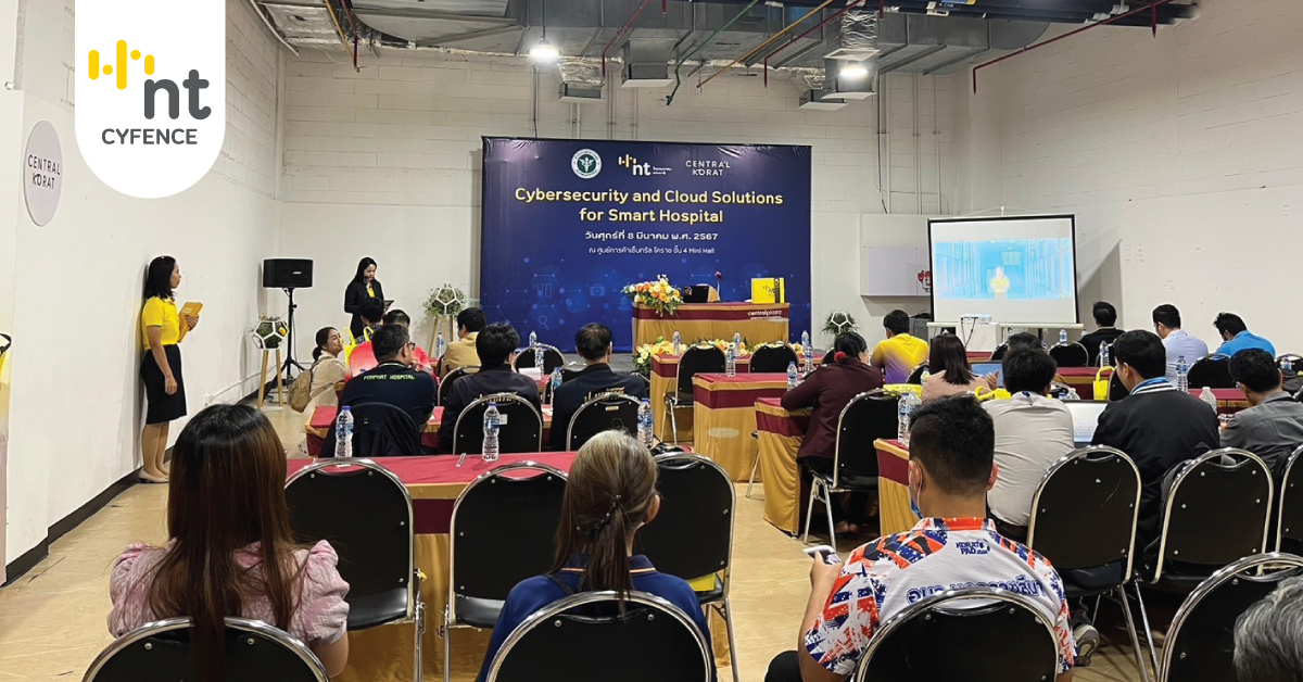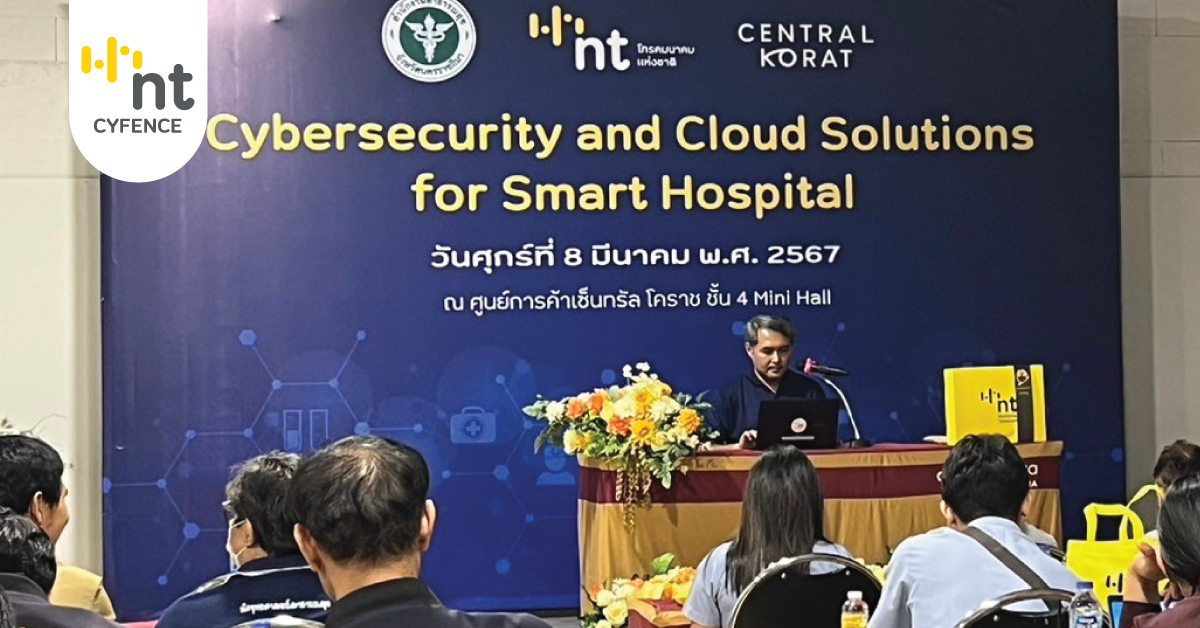 โดยงานดังกล่าวมีวิทยากรผู้เชี่ยวชาญจากฝ่ายธุรกิจความปลอดภัยไซเบอร์ (NT cyfence) และ ฝ่ายธุรกิจคลาวด์และบิ๊กดาต้า ร่วมบรรยายและแชร์ประสบการณ์ด้านการความปลอดภัยทาง IT และ โซลูชั่นคลาวด์สำหรับโรงพยาบาล ซึ่งขึ้น ณ ศูนย์การค้าเซ็นทรัลโคราช ชั้น 4 Mini Hall เมื่อวันที่ 8 มีนาคม 2567 ที่ผ่านมา